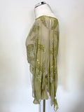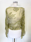 BRAND NEW AFTERSHOCK 100% SILK OLIVE GREEN BEAD & SEQUIN TRIMMED OVER TOP SIZE L