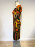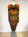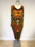 ALEXANDER MCQUEEN MULTICOLOURED PRINT STRETCH JERSEY LONG SLEEVE DRESS SIZE 46 UK 14