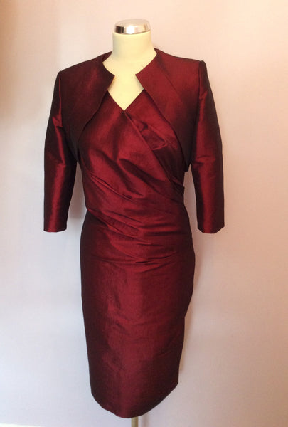 Alexon Deep Red Occasion Dress & Bolero Jacket Size 10/12