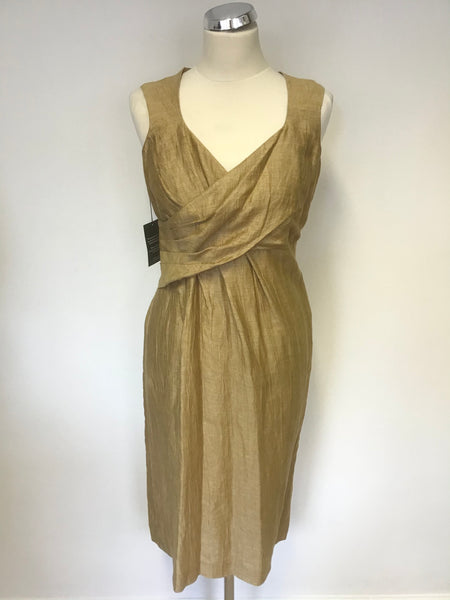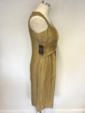 BRAND NEW ALEXON LIGHT BROWN/ GOLD SLEEVELESS LINEN BLEND PENCIL DRESS SIZE 10
