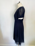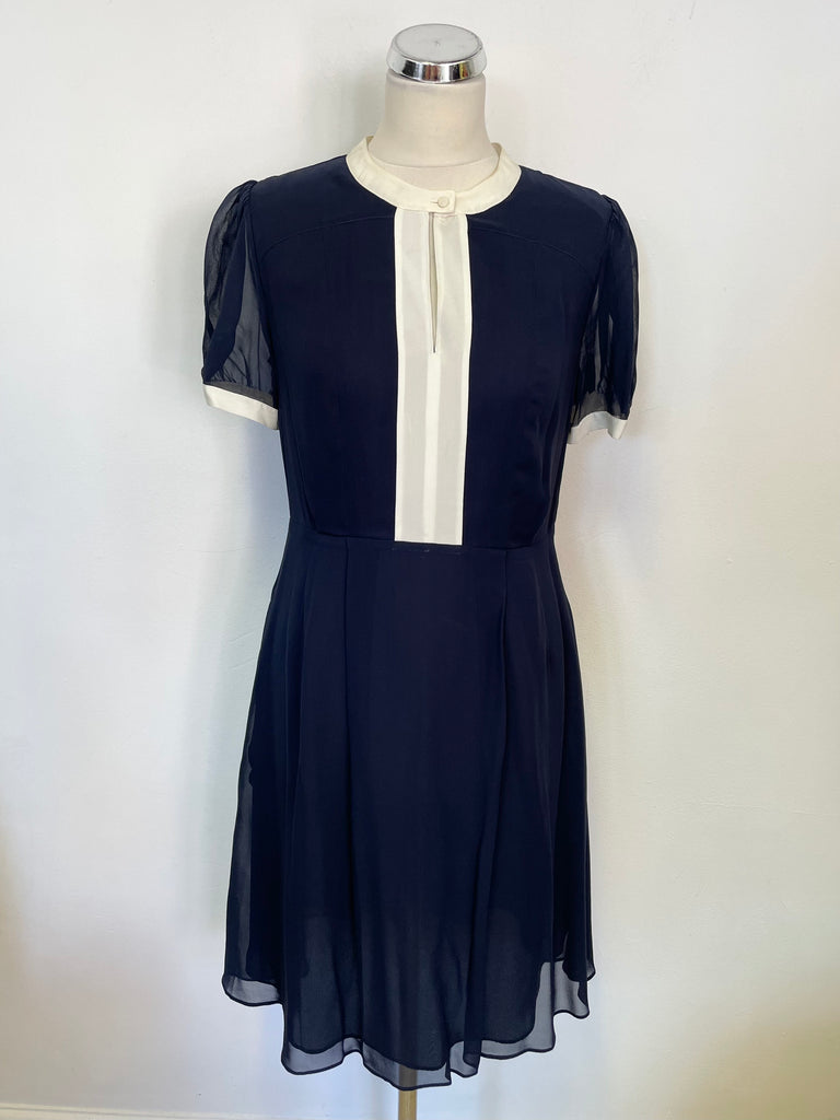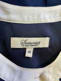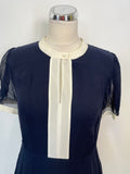 SOMERSET BY ALICE TEMPERLEY NAVY & IVORY TRIM SILK FIT & FLARE DRESS SIZE 10