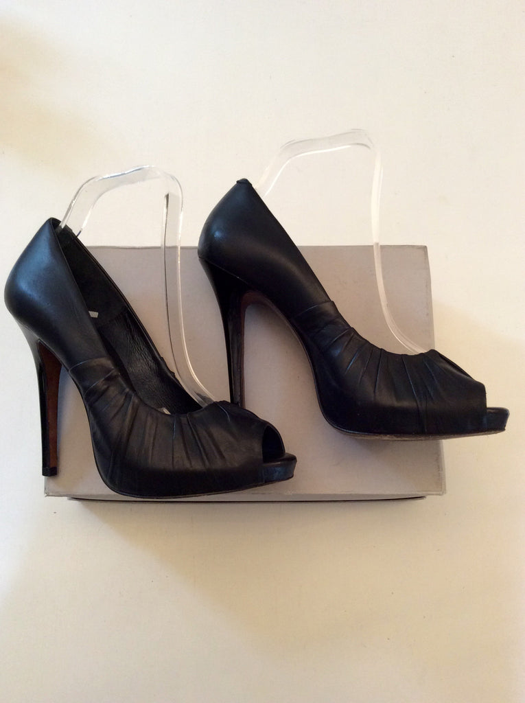 ALL SAINTS BLACK LEATHER PEEPTOE HEELS SIZE 6/39
