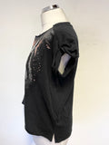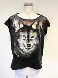 ALL SAINTS BLACK WOLF PRINT FRONT T SHIRT TOP SIZE S