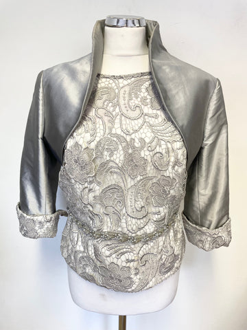 CARINA SILVER GREY SPECIAL OCCASION DRESS & MATCHING BOLERO JACKET SIZE 12