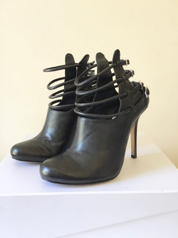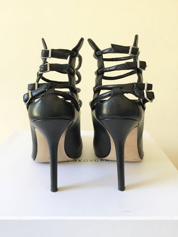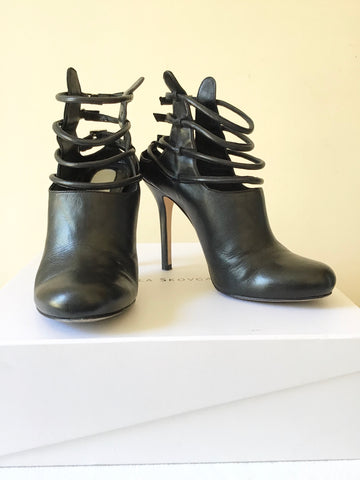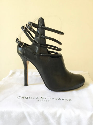 CAMILLA SKOVGAARD BLACK LEATHER MULTIPLE STRAP SHOE/ BOOTS SIZE 4.5/37.5