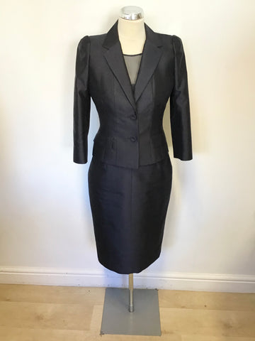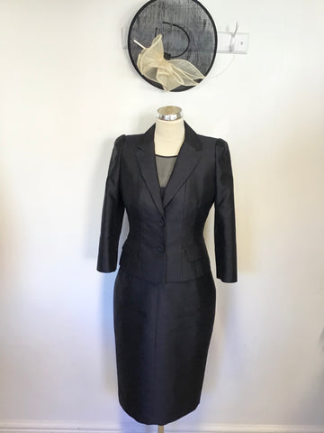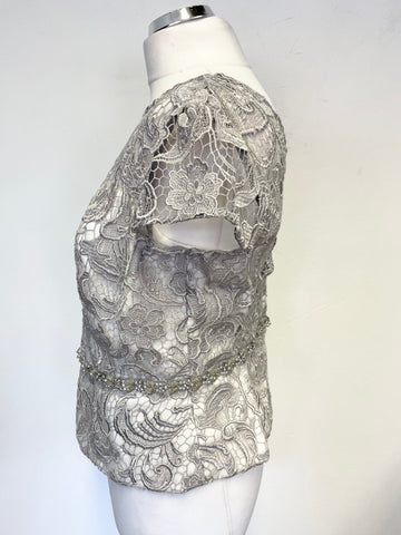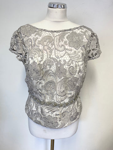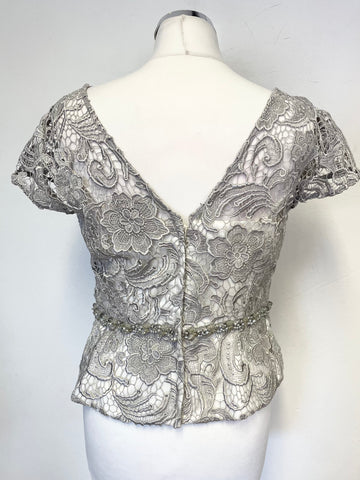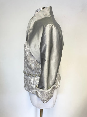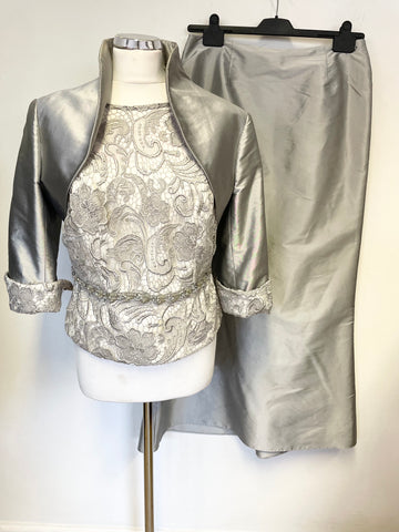 JOHN CHARLES SILVER GREY BOLERO JACKET,LONG SKIRT & LACE CAP SLEEVE TOP SUIT SIZE 14