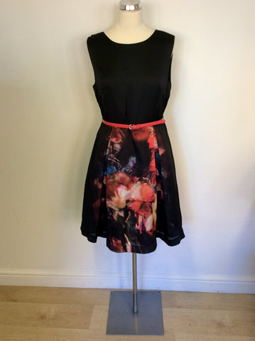 TED BAKER HUNNIE BLACK FLORAL PRINT LONG SLEEVED MAXI DRESS