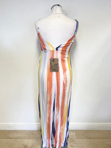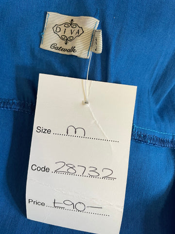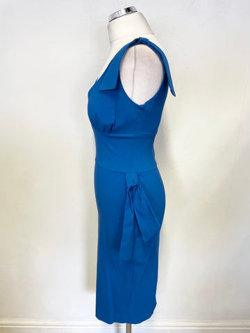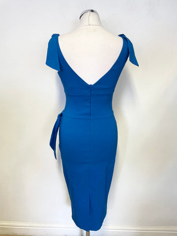 BRAND NEW DIVA CATWALK BLUE V NECK TIE TRIMS SLEEVELESS BODYCON DRESS SIZE M