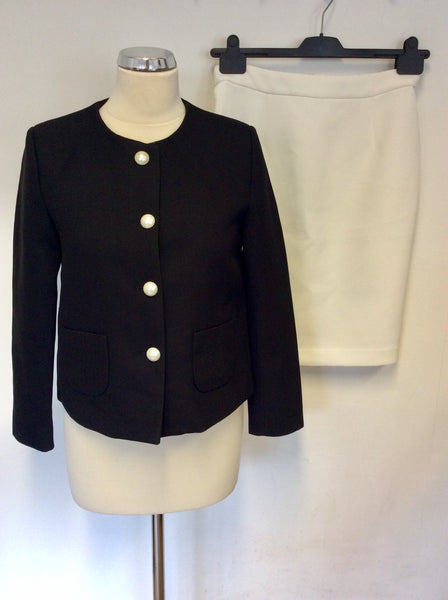AXEL BLACK JACKET & WHITE PENCIL SKIRT SUIT SIZE UK 10