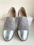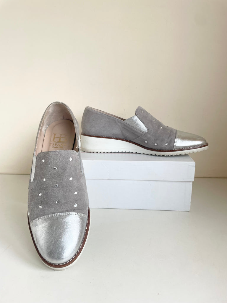 HB ESPANA GREY & SILVER RHINESTONE TRIM SUEDE & LEATHER WEDGE HEEL SHOES SIZE 4.5/37.5
