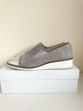 HB ESPANA GREY & SILVER RHINESTONE TRIM SUEDE & LEATHER WEDGE HEEL SHOES