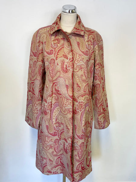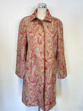 BETTY JACKSON RED & BEIGE JAQUARD DESIGN WOOL BLEND COAT SIZE 14