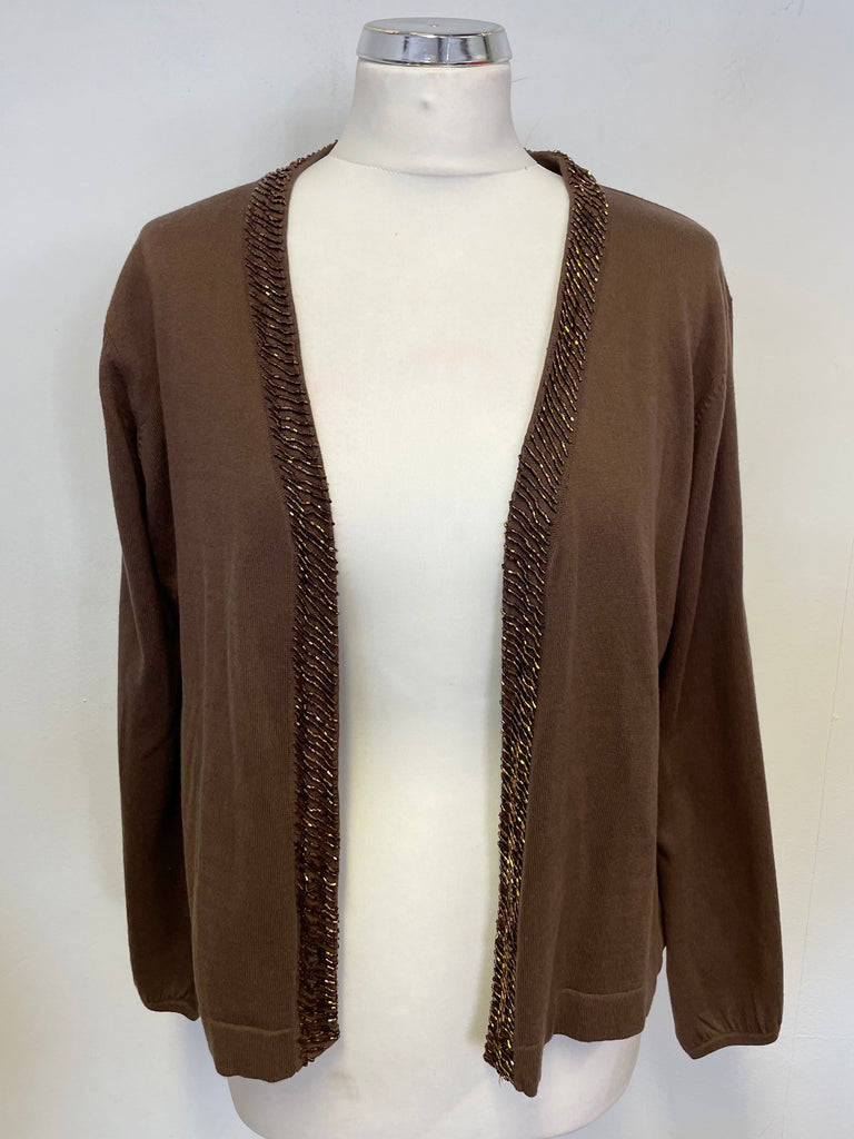 BRAND NEW ARTIGIANO COFFEE BROWN BEADED TRIM COTTON & SILK BLEND CARDIGAN SIZE L
