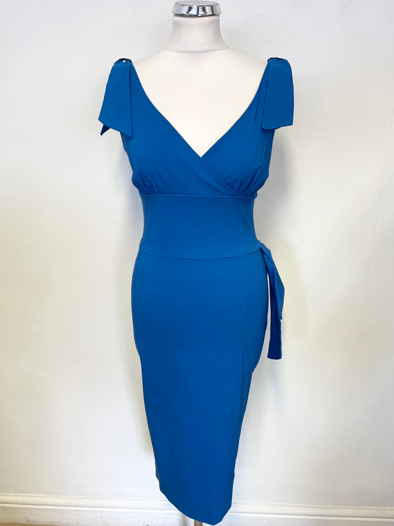 BRAND NEW WITH TAGS DIVA CATWALK BLUE V NECK TIE TRIMS SLEEVELESS BODYCON DRESS