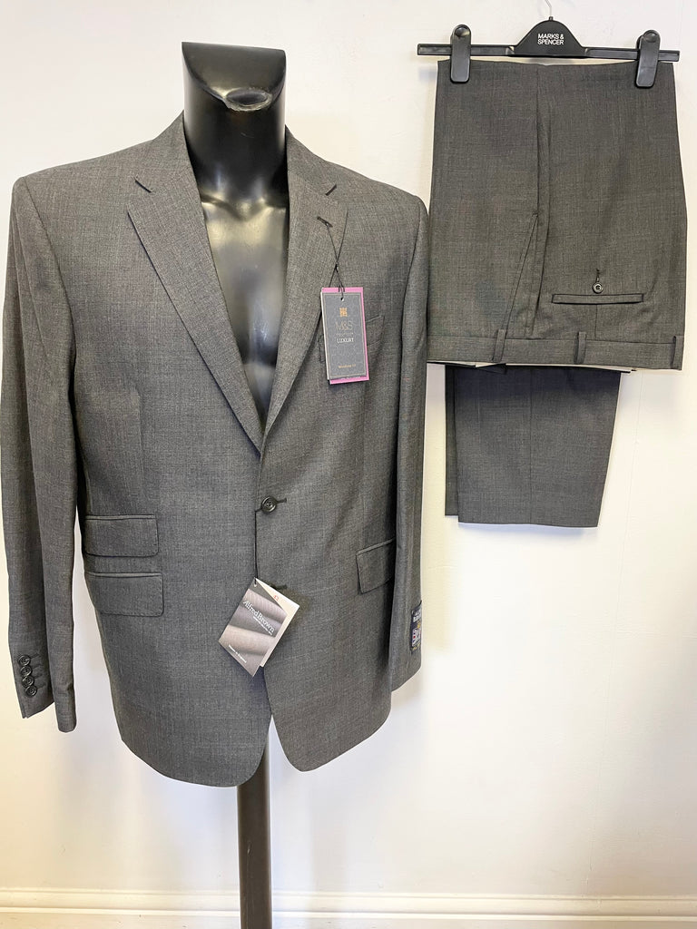 BRAND NEW MARKS & SPENCER LUXURY GREY ALFRED BROWN FINE WORSTED WOOL TAILORED SUIT SIZE 42L
