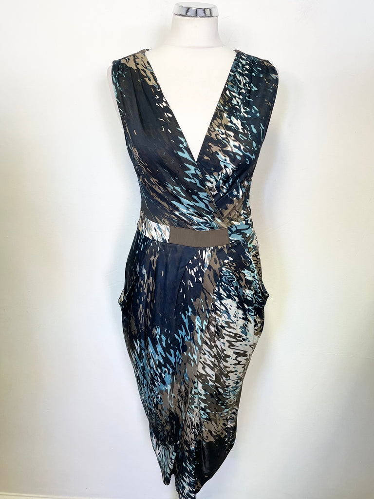 BRAND NEW PENNY BLACK MULTI COLOURED PRINT STRETCH JERSEY SLEEVELESS WRAP DRESS SIZE M