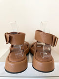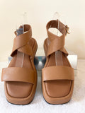 BRAND NEW WAT THE BRAND TAN LEATHER PLATFORM SANDALS SIZE 5/38
