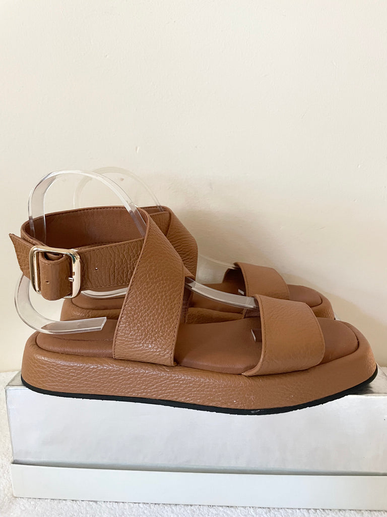 BRAND NEW WAT THE BRAND TAN LEATHER PLATFORM SANDALS