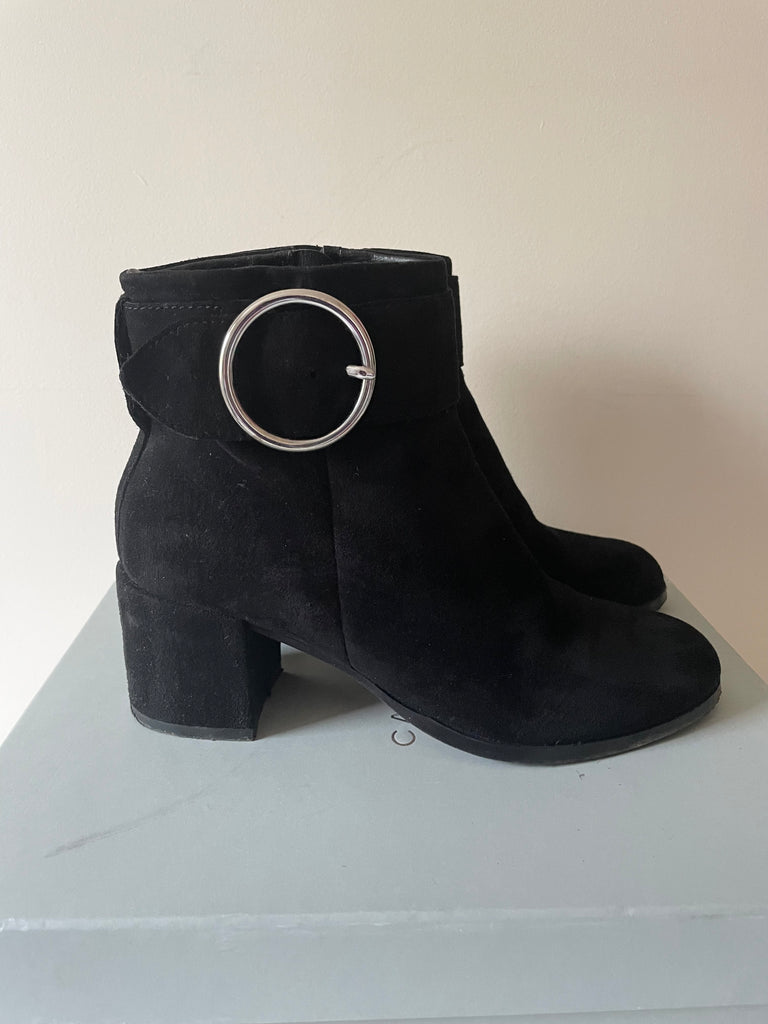 CARVELA SNORE BLACK SUEDE BUCKLE TRIM HEELED ANKLE BOOTS SIZE 5/38