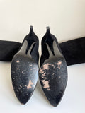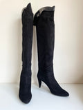 CHARLES JOURDAN BLACK SUEDE & LEATHER TRIM KNEE LENGTH HEEL BOOTS SIZE 5/37