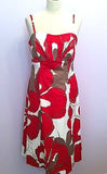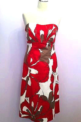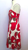 Coast Red, White & Beige Floral Print Strappy / Strapless Dress Size 14