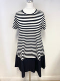 COS NAVY BLUE & WHITE STRIPE STRETCH JERSEY TOP SHORT SLEEVE A LINE DRESS SIZE S