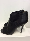 DANIEL BLACK LEATHER & ELASTICATED FABRIC HEELED SHOE BOOTS SIZE 5/38