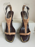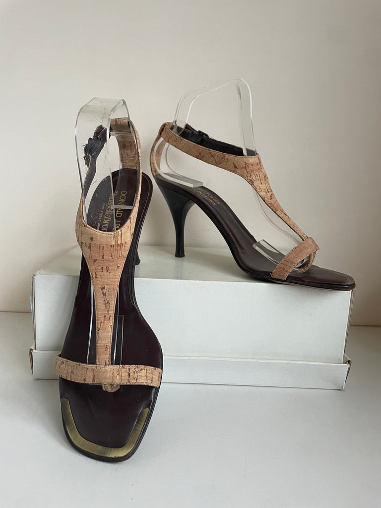 DONALD J PLINER FOR RUSSELL & BROMLEY CORK LEATHER TOE POST HEEL SANDALS SIZE 6.5/39.5
