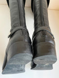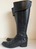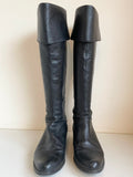 DUNE BLACK LEATHER KNEE LENGTH REAR ZIP FASTEN BOOTS SIZE 5/38