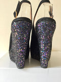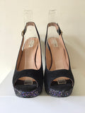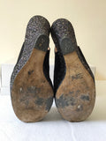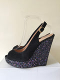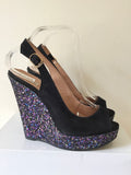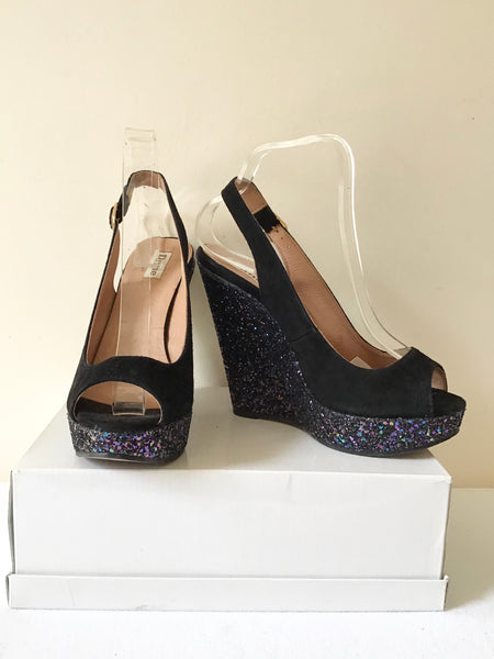 DUNE BLACK SUEDE PEEPTOE GLITTER WEDGE HEEL SANDALS SIZE 6.5/40
