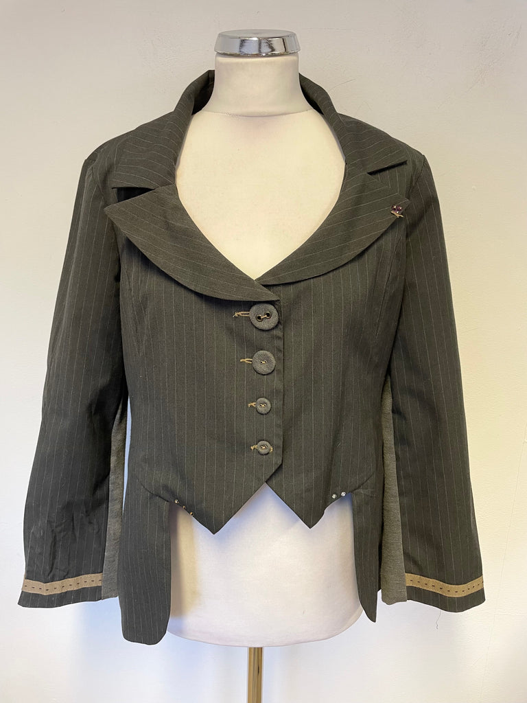ELISA CAVALETTI CHARCOAL GREY PINSTRIPE SUIT SHAPED FRONT JACKET SIZE L