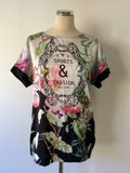 ERFO BLACK & MULTI COLOURED SATIN FRONT SHORT SLEEVE TOP