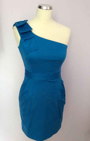 French Connection Turquoise Blue Bow Trim One Shoulder Dress Size 8