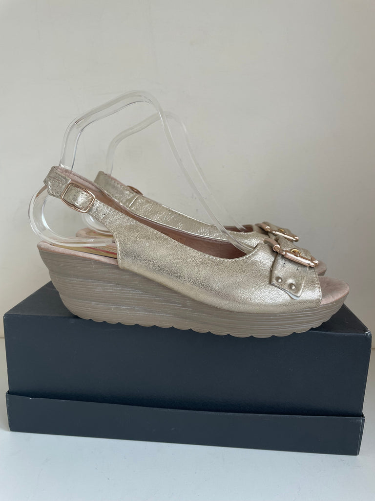 HEAVENLY FEET PALE GOLD WEDGE HEEL SANDALS SIZE 6/39