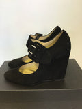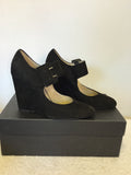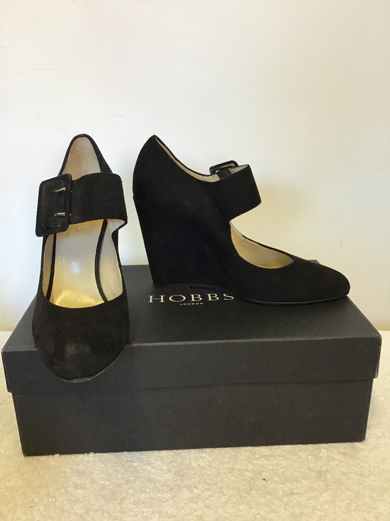 HOBBS BLACK SUEDE BUCKLE FASTEN STRAP WEDGE HEELS SIZE 4/37