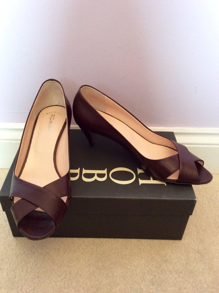 Hobbs Chocolate Brown Leather Bijou Cross Vamp Peep Toe Heels
