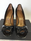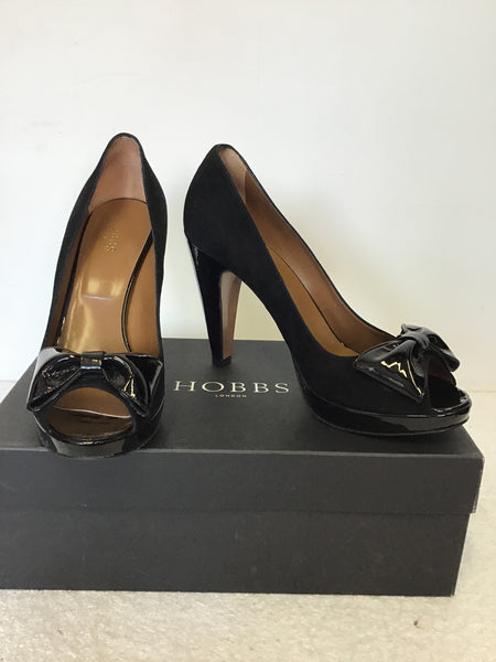 HOBBS FELIX BLACK SUEDE & PATENT LEATHER BOW TRIM PEEP TOE HEELS SIZE 7/40