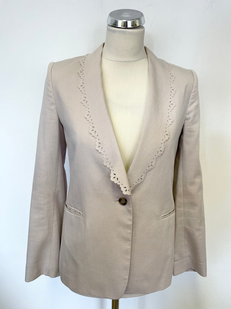 HOBBS NW3 BEIGE LONG SLEEVE LAZER CUT TRIM COLLARED JACKET SIZE 8