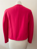HUGO BOSS CHERRY RED COLLARLESS 3/4 SLEEVE SHORT JACKET SIZE 12