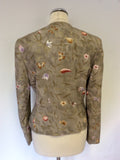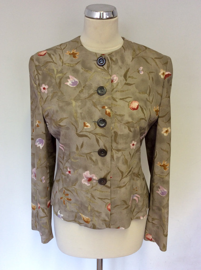 JAEGER GREY FLORAL PRINT COLLARLESS JACKET SIZE 12
