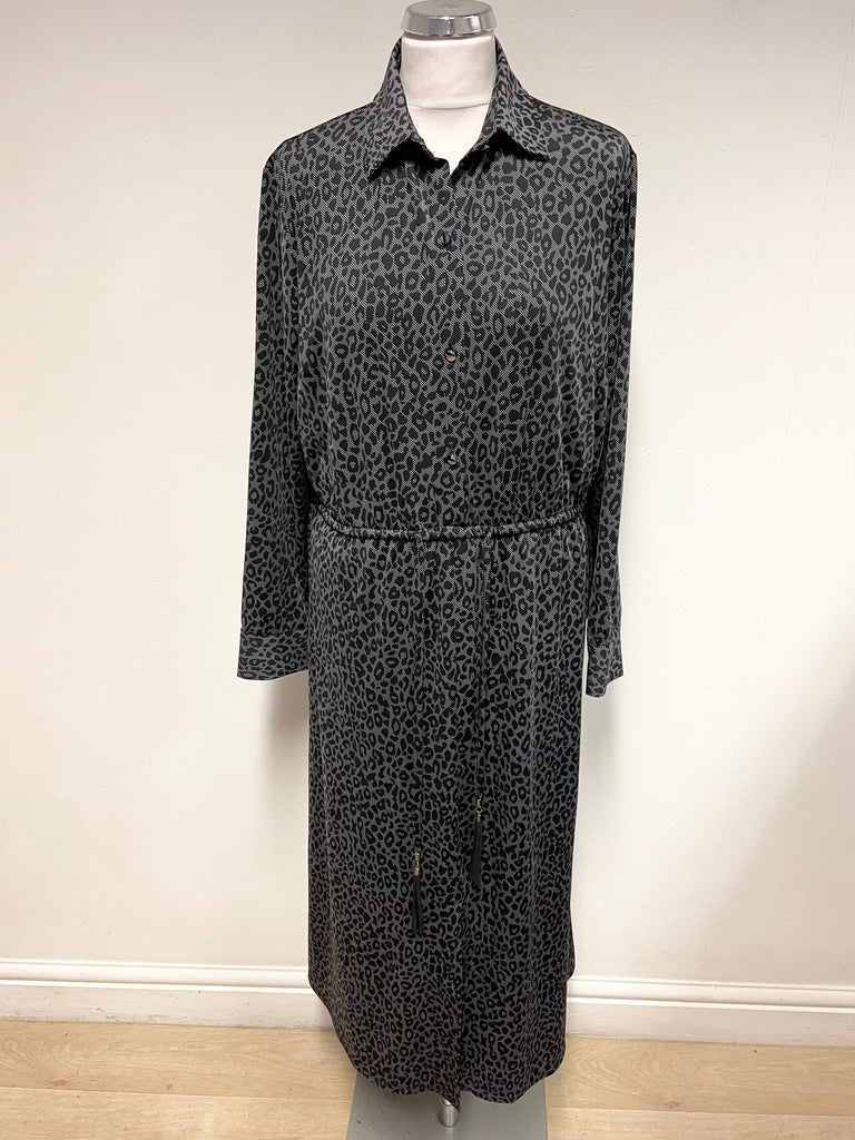 K DESIGN GREY & BLACK PRINT LONG SLEEVE MIDI DRESS SIZE XL