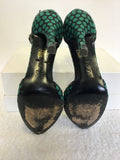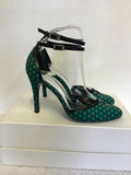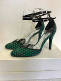 KAREN MILLEN BLACK & EMERALD GREEN SPOTTED ANKLE STRAP HEELS SIZE 4/37