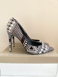 KURT GEIGER BROWN & IVORY AZTEC PRINT PONY SKIN LEATHER HEELS SIZE 7.5/41
