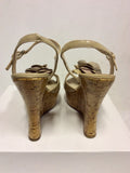 LK BENNETT NUDE PATENT LEATHER WEDGE HEEL SANDALS SIZE 6/39