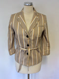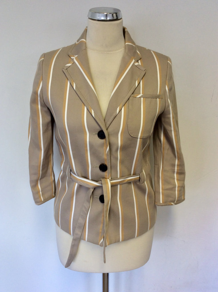MULBERRY FAWN,MUSTARD & WHITE STRIPE TIE BELT COTTON BLEND JACKET SIZE 10