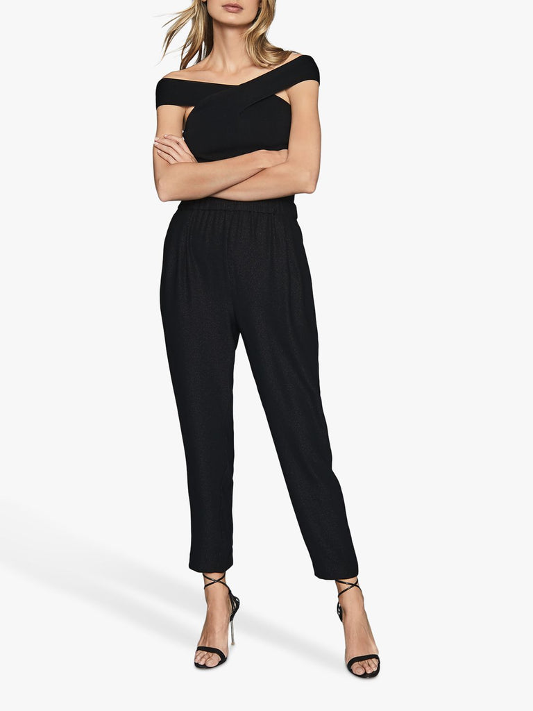 BRAND NEW REISS BLACK METALLIC TAPERED LEG JOGGER STYLE TROUSERS