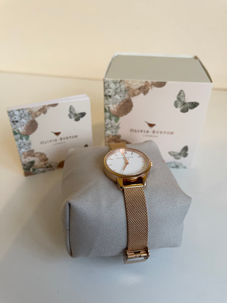OLIVIA BURTON ROSE GOLD WHITE DIALMESH STRAP WATCH