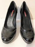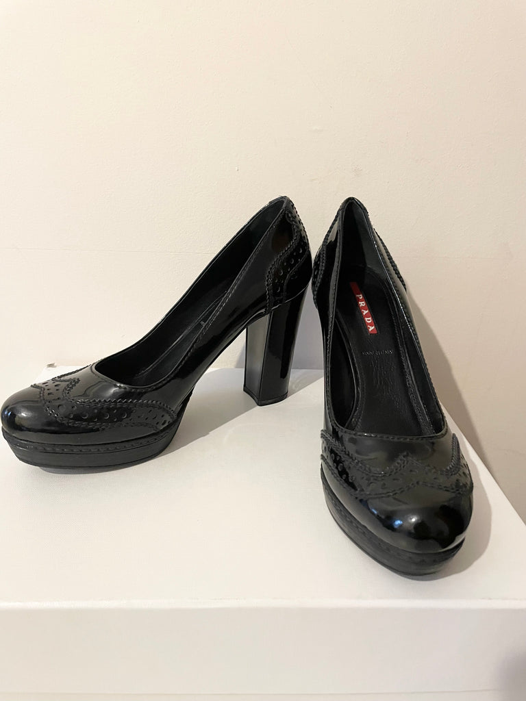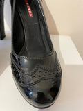 PRADA BLACK PATENT LEATHER BROGUE DESIGN HEELS SIZE 4.5/37.5