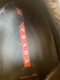 BLACK RUBBER SOLE WITH RED PRADA STRIPE