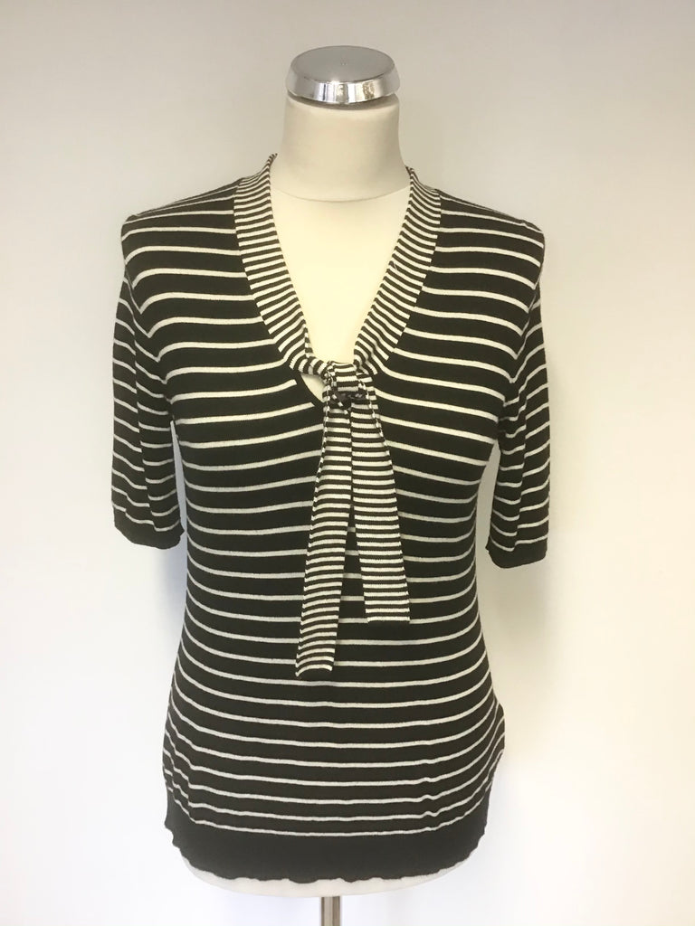 RALPH LAUREN BLACK & WHITE STRIPED V NECKLINE TIE TRIM SHORT SLEEVE JUMPER SIZE M